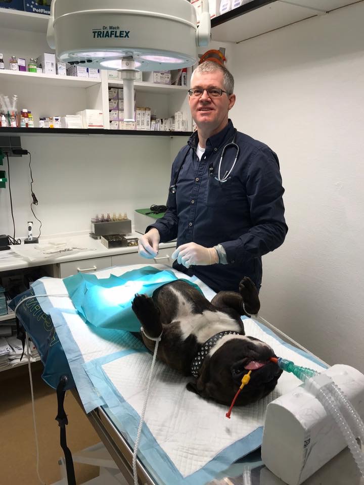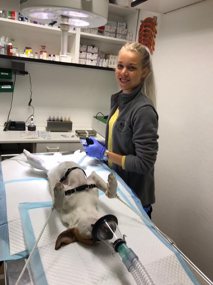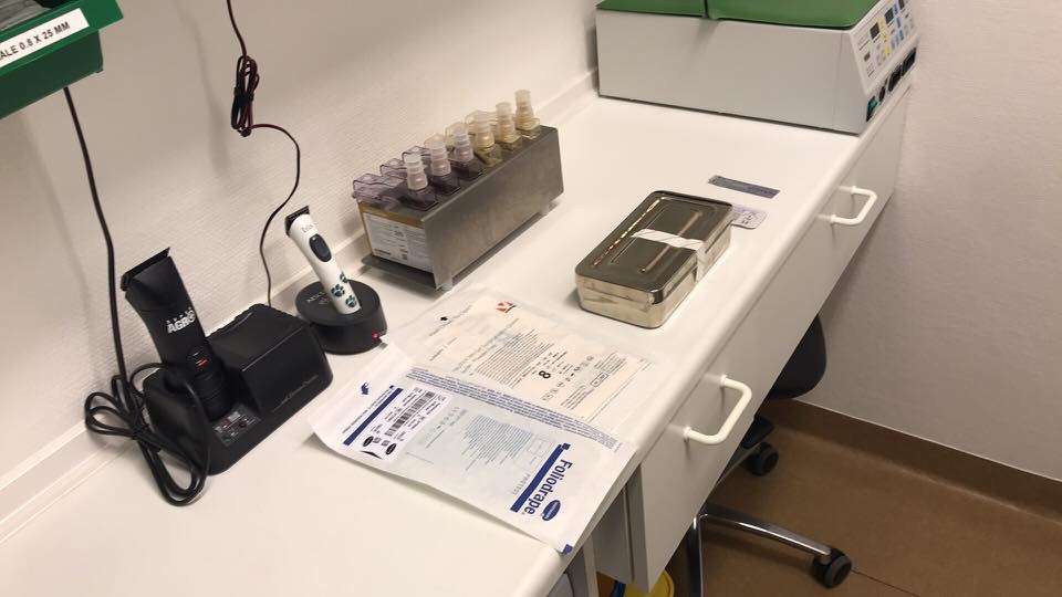 Hunden/katten afleveres om formiddagen imellem kl. 8 – 10. Det er vigtigt at dyret er fastet så der ikke er adgang til morgenfoder, men adgang til drikkevand er okay. Hunde må gerne være luftet inden ankomst til klinikken. Efter en kort undersøgelse af hjerte/lunger og almenbefindende bedøves hunden/katten og operationen begynder umiddelbart derefter. Således undgåes unødig ængstelse hos dyret, da ejeren er til stede når bedøvelsen indgives og dyret mister bevistheden(falder i søvn). Temperaturen tjekkes ved mistanke feber eller anden lidelse optil operation. Under operation indgives ilt O2 via maske eller tubus, og der suplleres evt. med Isoflouran gas ved større eller længere operationer.