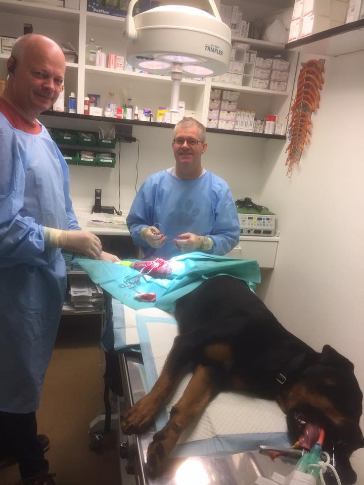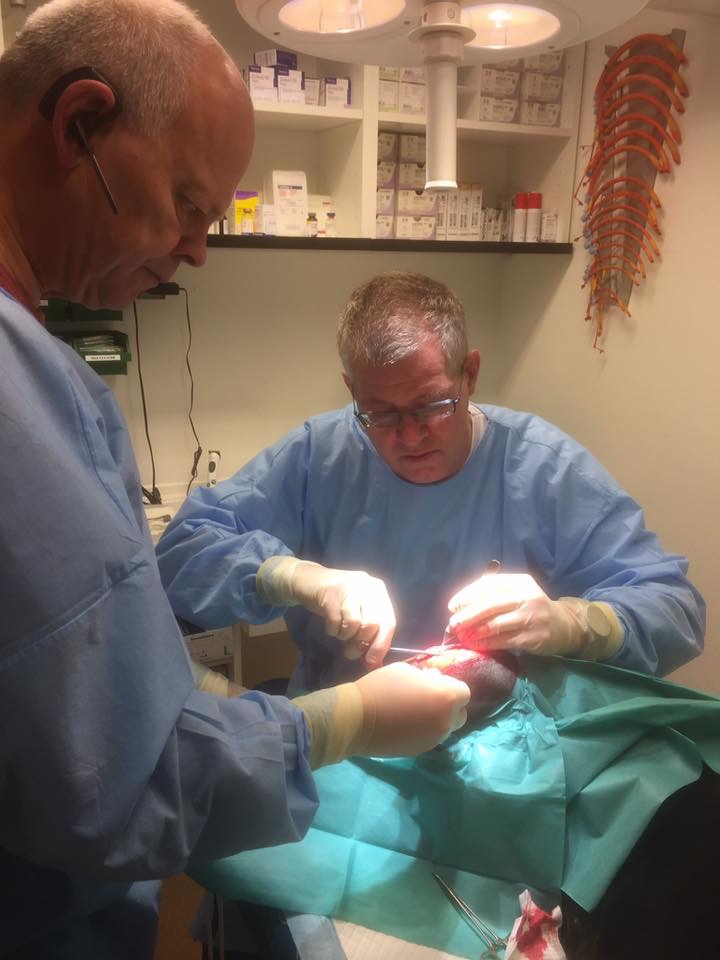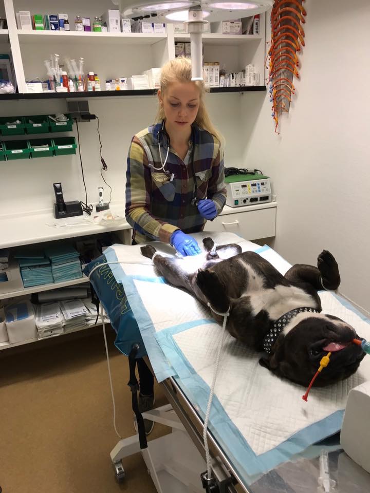 Efter operationen og behandlingen med antibiotika og smertestillende midler lægges hunden/katten til opvågning i et bur rum med blødt og skridsikkert underlag, samt varmende underlag og en ble til at fjerne evt. urin ved opvågningen. Hunden/katten observeres løbende, og ejeren indkaldes efter opvågning, eller efter aftalt tidspunkt. Ved opholdet i klinikken sikres rolig og ukompliceret opvågning, samt håndtering af siveblødning, hvis denne forekommer fra såret. Dette er heldigvis meget sjældent, og skyldes ofte små kar i huden, og er ikke farligt.